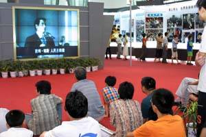 圖:《反對邪教崇尚文明》展覽閉幕 2001年07月30日 19:30 ![]() 觀眾席地而坐觀看反邪教影片。新華社記者 于小平 攝