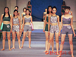 圖:中國民族時(shí)裝模特大賽 1999年8月18日 08:00 ![]() 九九中國民族時(shí)裝模特大賽十六日晚在南寧結(jié)束,圖為選手們在泳裝比賽中。中新社記者 錢興強(qiáng) 攝 |