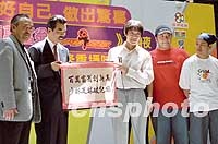圖:周星馳出席《百萬富翁少林足球慈善夜》記者會(huì) 2001年08月11日 20:45 ![]() 亞視行政總裁封小平(右二)與周星馳等人出席儀式,周星馳將聯(lián)同《少林足球》演員于20日踏上「百萬大道」,爭(zhēng)取百萬善款,該晚贏得之所有獎(jiǎng)金,將全數(shù)撥捐瑪麗醫(yī)院癌病兒童。中新社圖 吳智仁 攝