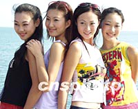 戴安娜2001世界精英模特大賽中國預(yù)選賽暨金沙灘模特大賽十二日在青島金沙灘進(jìn)行外外景拍攝。圖為青春亮麗的模特新秀。中新社記者 錢興強(qiáng) 攝
