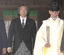圖文:小泉純一郎參拜靖國神社招致抗議 2001年08月13日 18:06 ![]() 小泉不顧反對參拜靖國神社 ![]() 在二戰(zhàn)中韓國死難者家屬抗議小泉參拜 中新網(wǎng)北京8月13日消息:日本首相小泉純一郎今天下午不顧中國和韓國等亞洲鄰國的強(qiáng)烈反對參拜了供奉著十四名甲級(jí)戰(zhàn)犯的靖國神社。 參拜完畢后,當(dāng)被問及在任職期間他是以個(gè)人還是首相身份參拜靖國神社時(shí),他回答說:“我不想特別說明這次是私人還是官方的參拜! 小泉在日本時(shí)間下午四點(diǎn)半(北京時(shí)間三點(diǎn)半)參拜了靖國神社后回答了記者提問。 一批韓國人今天在首相官邸舉行靜坐,以抗議小泉純一郎參拜靖國神社。這個(gè)九人組成的抗議團(tuán)體代表在二戰(zhàn)中日軍中喪生的軍人和平民的家屬。他們自從上周六開始就號(hào)召舉行靜坐、絕食和其它抗議活動(dòng)。 太平洋戰(zhàn)爭喪親聯(lián)合會(huì)舉行了抗議活動(dòng)反對小泉參拜靖國神社。 該聯(lián)合會(huì)一名成員說,此次參拜會(huì)激怒亞洲人民。他說:“我相信沒有任何一個(gè)亞洲人能接受首相參拜靖國神社,即使他改變了參拜的日期! |