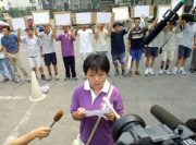 圖文:清華學(xué)子到日本駐華使館抗議小泉參拜 2001年08月15日 16:39 ![]() 法新/圖 ![]() 法新/圖 ![]() 路透/圖 中新網(wǎng)北京8月15日消息:今天上午,約30名清華大學(xué)學(xué)子向日本駐華大使館遞交了抗議書,對(duì)日本首相小泉純一郎13日參拜靖國(guó)神社一事表示強(qiáng)烈的憤慨。今天是抗戰(zhàn)勝利日本投降五十六周年紀(jì)念日。 目擊者說,約有三十多名清華大學(xué)學(xué)生在日本大使館門前打出“打倒日本帝國(guó)主義”的橫幅標(biāo)語,高唱愛國(guó)主義歌曲。 一名不愿透露姓名的女學(xué)生高聲宣讀了抗議書:“我們強(qiáng)烈要求日本政府向中國(guó)以及其他受過日本侵略的亞洲人民做出正式道歉!” 據(jù)中國(guó)日?qǐng)?bào)網(wǎng)站報(bào)道,這些學(xué)生在日本大使館外一邊揮舞著沒有任何記號(hào)的空白卡片,一邊高呼“打倒日本帝國(guó)主義!”“中國(guó)人民萬歲!”“你們(日本)再也不可能欺凌中國(guó)了!” 一名姓劉的學(xué)生說:“這些空白卡就意味著:對(duì)于日本政府的胡說八道,我們覺得沒有什么好說的,他們不值得我們跟他們說話。” 目擊者表示,抗議活動(dòng)克制、有序。守衛(wèi)大使館的警察說,根據(jù)交通規(guī)則他們可以停留十分鐘。 整個(gè)示威活動(dòng)大約進(jìn)行了十五分鐘,隨后,示威學(xué)生乘坐汽車離開了日本大使館。 |