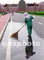 圖:APEC將在大連舉行高官會議 2001年08月20日 16:43 ![]() 一位女工20日在大連國際會議中心前清潔路面,為將于23日召開APEC第十三屆部長級會議第三次高官會作好準備。中新社記者 王瑤 攝