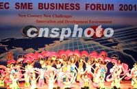 ![]() 包括中國在內(nèi)的APEC成員體中小企業(yè)家約六百人參加二十七日在上海開幕的APEC中小企業(yè)工商論壇。圖為開幕式上的歌舞表演。中新社記者 潘索菲 攝
