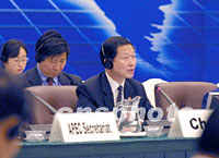 組圖:APEC中小企業(yè)部長(zhǎng)會(huì)議在上海開(kāi)幕 2001年08月29日 14:37 ![]() 第八屆APEC中小企業(yè)部長(zhǎng)會(huì)議八月二十九日在上海國(guó)際會(huì)議中心開(kāi)幕。中新社記者 潘索菲 攝 ![]() 二十九日在上海召開(kāi)的APEC中小企業(yè)部長(zhǎng)會(huì)議主題是:“新世紀(jì)、新挑戰(zhàn):創(chuàng)新與發(fā)展環(huán)境”。圖為會(huì)議主席、中國(guó)國(guó)家經(jīng)濟(jì)貿(mào)易委員會(huì)主任李榮融作開(kāi)幕講話。中新社記者 潘索菲 攝