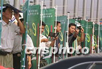 圖:西安市民頂烈日觀看貿(mào)洽會(huì) 2001年09月05日 18:35 ![]() 西安市民五日在烈日下靠廣告牌遮陽(yáng)觀看貿(mào)易洽談會(huì)開(kāi)幕式,等待進(jìn)入展廳。本屆展會(huì)上的現(xiàn)代化民用產(chǎn)品吸引了眾多參觀者。中新社記者 宋吉河 攝