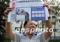 圖文:北京各大報(bào)紙以突出版面報(bào)道美大爆炸事件 2001年09月12日 16:36 ![]() 十一日發(fā)生的美國(guó)受襲“爆炸事件”引起了北京媒體的全面關(guān)注,十二日清晨報(bào)攤攤主高舉報(bào)紙頭版向路人吆喝。中新社記者 鄭萍萍 攝