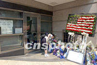 圖:美國駐香港總領(lǐng)事館門前獻花人不斷 2001年09月17日 17:40 ![]() 美國紐約世貿(mào)中心受攻擊后,每天都有人到美國駐香港總領(lǐng)事館獻花悼念遇難者。9月17日美國駐香港總領(lǐng)事館再度關(guān)閉,但依然不時有人在緊閉的大門外獻上寄托哀思的鮮花。中新社傳真 任晨鳴 攝 |