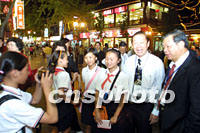 圖:少先隊(duì)員和華商在夫子廟合影 2001年09月17日 22:47 ![]() 第六屆華商大會(huì)代表十七日晚游覽南京著名風(fēng)景區(qū)夫子廟,南京的少先隊(duì)員好奇地與代表們攀談并合影。中新社記者 李剛 攝 |