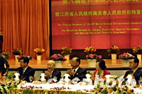 圖:華商大會圓滿閉幕 2001年09月19日 21:14 ![]() 第六屆世界華商大會十九日晚在南京市圓滿閉幕,南京市人民政府設(shè)宴招待出席華商大會的代表。中新社記者 史利 攝 |