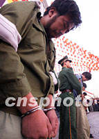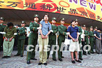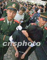組圖:北京西城警方開展“嚴(yán)打”專項(xiàng)行動(dòng) 2001年09月20日 15:06 ![]() 袁存敏等七名盜竊、搶劫犯罪嫌疑人,二十日在北京萬(wàn)通商場(chǎng)前,被西城公安局公開逮捕。警方在人員密集地段進(jìn)行公開宣判,以威懾犯罪分子、增強(qiáng)市民防范意識(shí)。中新社記者 宋吉河 攝 ![]() 北京公安西城分局二十日公開逮捕七名犯罪嫌疑人,并對(duì)三名違法人員依法勞動(dòng)教養(yǎng)。該局在“嚴(yán)打”行動(dòng)中破獲各類刑事案件1531起、抓獲各類犯罪嫌疑人2058名、收容“三無(wú)”人員15110人次。中新社記者 宋吉河 攝