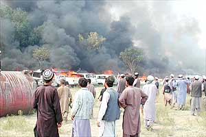 圖文:阿富汗反美大示威中有12名警察受傷 2001年09月27日 11:10 ![]() 示威者圍觀美國大使館內(nèi)狂燒的車子。路透社 圖 中新網(wǎng)香港9月27日消息:幾千名阿富汗示威者昨天闖入美國駐阿富汗大使館,放火焚燒遭丟棄的汽車,火勢波及大使館的外圍建筑,但主樓并未受破壞。 塔利班士兵同大使館內(nèi)外暴亂的示威者發(fā)生沖突,消防員最終把火勢控制住。喀布爾警察首腦尤努斯說,12名警察在設(shè)法控制暴亂時受傷。他說:“我們盡力避免這樣的事情發(fā)生,但示威者的人數(shù)使我們不可能成功。他們有幾千人。” 38歲的示威者烏拉說,示威的目的是向美國發(fā)出信號。“我們干得好!边@名店主說,“美國要燒掉我們的國家,所以我們焚燒他們的大使館! 美國駐阿富汗大使館自1989年起就無人駐守,只保留了一些阿富汗雇員負責(zé)維修等有限的工作。據(jù)悉,這次示威是美國遭襲以來喀布爾發(fā)生的最大規(guī)模反美事件。 |