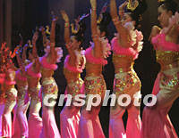 圖:西安為游人演出大型唐代舞蹈 2001年10月06日 10:39 ![]() 西安長樂宮劇院在國慶假期里為游客演出《霓裳羽衣舞》。傳說此舞是楊玉環(huán)按玄宗皇帝旨意編排的宮廷舞蹈,以仙女在天宮中的漫舞輕歌來頌揚(yáng)大唐盛世國泰民安。中新社記者 宋吉河 攝 |