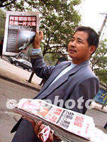 圖:“中國出線!美國開戰(zhàn)!”北京報紙好賣 2001年10月08日 10:56 ![]() “‘中國出線!美國開戰(zhàn)!’看報!”,北京報刊八日清晨刊登了中國足球出線世界杯勝況,和美國反擊塔利班的戰(zhàn)事,街頭報販為此大聲叫賣。中新社記者 鄒憲 攝 |