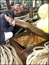 圖文:25中國(guó)偷渡客被拋尸大海 22人身份已確認(rèn) 2001年10月10日 11:00 ![]() 警方查看偷渡客藏身的漁船 中新網(wǎng)北京10月10日消息:通過(guò)對(duì)生存者的盤(pán)問(wèn),韓國(guó)警方已查明準(zhǔn)備偷渡入境而窒息死亡的25名中國(guó)人中的22人身份。 據(jù)《朝鮮日?qǐng)?bào)》報(bào)道,這些人都是來(lái)自中國(guó)福建省的男性,如偷渡成功就交給蛇頭6萬(wàn)~6.5萬(wàn)元人民幣。 據(jù)該報(bào)昨天報(bào)道,60多名中國(guó)偷渡客躲藏在一艘韓國(guó)漁船里企圖偷渡到韓國(guó),在途中26人因窒息而死亡,為消滅犯罪證據(jù),韓國(guó)偷渡集團(tuán)竟將死者的尸體全部扔進(jìn)了海里。其余的34人在麗水市附近的大境島登陸上岸,并于當(dāng)天全被拘捕。 初步判斷,這些偷渡客是因?yàn)槎阍跊](méi)有換氣口的儲(chǔ)魚(yú)艙里而窒息死亡的。據(jù)介紹,這些儲(chǔ)魚(yú)艙高3米,只有3米大小的地方連站直都很困難。 韓國(guó)警方目前正就整個(gè)案情進(jìn)行調(diào)查。