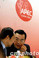 圖:臺北代表APEC新聞發(fā)布會 2001年10月16日 20:53 ![]() 中國臺北代表林信義和陳博志先生十六日在上海APEC國際新聞中心舉行發(fā)布會。中新社記者 賈國榮 攝 |
