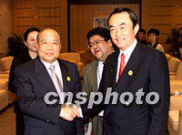 石廣生與日經(jīng)濟(jì)大臣就中日貿(mào)易糾紛交換意見 2001年10月17日 23:35 ![]() 中國(guó)對(duì)外經(jīng)濟(jì)貿(mào)易合作部長(zhǎng)石廣生十七日在上海國(guó)際會(huì)議中心會(huì)見前來參加2001年亞太經(jīng)合組織(APEC)會(huì)議的日本經(jīng)濟(jì)產(chǎn)業(yè)大臣平沼赳夫。中新社記者 毛建軍 攝