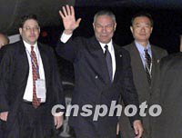 圖:美國(guó)國(guó)務(wù)卿鮑威爾抵達(dá)上海 2001年10月18日 10:14 ![]() 10月17日,美國(guó)國(guó)務(wù)卿科林·盧瑟·鮑威爾乘機(jī)抵達(dá)上海浦東國(guó)際機(jī)場(chǎng)。中新社圖 |