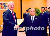 圖:中美商務(wù)高官會(huì)談 2001年10月18日 12:51 ![]() 中國(guó)對(duì)外經(jīng)濟(jì)貿(mào)易部石廣生部長(zhǎng)十八日上午在上海國(guó)際會(huì)議中心與美國(guó)商務(wù)部副部長(zhǎng)博德曼會(huì)談。中新社記者賈國(guó)榮攝 |