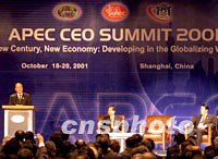 組圖:2001年APEC CEO峰會(huì)在上海開幕 2001年10月18日 15:05 ![]() 亞太經(jīng)合組織工商領(lǐng)導(dǎo)人峰會(huì)(APEC CEO)十八日下午在上海開幕,中國國務(wù)院副總理錢其琛出席開幕式并致辭。中新社記者 毛建軍 攝 ![]() 亞太經(jīng)合組織工商領(lǐng)導(dǎo)人峰會(huì)(APEC CEO)十八日下午在上海開幕,上海市長(zhǎng)徐匡迪出席開幕式并致辭。中新社記者 毛建軍 攝