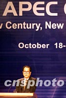 圖:錢其琛出席APEC CEO峰會開幕式并致辭 2001年10月18日 15:08 ![]() 亞太經合組織工商領導人峰會(APEC CEO)十八日下午在上海開幕,中國國務院副總理錢其琛出席開幕式并致辭。中新社記者 毛建軍 攝 |
