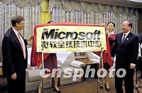 ![]() 十月十八日上海市市長徐匡迪與微軟公司主席比爾·蓋茨為新成立的微軟全球技術(shù)中心揭牌。同時,上海市政府與微軟公司還舉行“共同促進(jìn)上海軟件產(chǎn)業(yè)發(fā)展諒解備忘錄”簽字儀式。中新社記者 潘索菲 攝