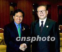 圖:江澤民會(huì)見(jiàn)秘魯總統(tǒng)托萊多 2001年10月20日 16:18 ![]() 10月20日,中國(guó)國(guó)家主席江澤民在上海會(huì)見(jiàn)前來(lái)參加2001年亞太經(jīng)合組織領(lǐng)導(dǎo)人非正式會(huì)議的秘魯總統(tǒng)托萊多。中新社圖 |