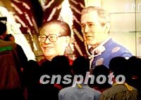組圖:布什穿中式服裝亮相APEC峰會(huì) 2001年10月21日 11:31 ![]() 美國(guó)總統(tǒng)布什身穿藍(lán)色中式對(duì)襟服裝走出特制專(zhuān)用轎車(chē),出席二十一日的上海APEC峰會(huì)。中外記者聚集在現(xiàn)場(chǎng)直播的電視屏幕前,進(jìn)行同步報(bào)道。中新社記者 賈國(guó)榮 攝 ![]() 十月二十一日清晨,中外記者聚集在上海國(guó)際新聞中心現(xiàn)場(chǎng)直播的電視屏幕前,關(guān)注中國(guó)國(guó)家主席江澤民身著紅色中式對(duì)襟服,迎接身穿藍(lán)色中式對(duì)襟服的美國(guó)總統(tǒng)布什,進(jìn)行出席上海APEC峰會(huì)。中新社記者 賈國(guó)榮 攝