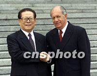 江澤民說,打擊恐怖主義是一項長期艱巨任務(wù) 2001年10月23日 21:04 ![]() 國家主席江澤民二十三日在北京歡迎來訪的智利總統(tǒng)拉戈斯。中新社記者 滿會喬 攝