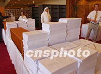 組圖:WTO部長會議開幕 多哈做好充分準(zhǔn)備 2001年11月10日 17:08 ![]() 第四屆WTO部長會議在卡塔爾首都多哈開幕, 大會組委會為參加會議的各國官員準(zhǔn)備各種會議資料。中新社記者 錢興強(qiáng) 攝 ![]() 第四屆WTO部長會議在卡塔爾首都多哈開幕,為確保大會安全,身穿阿拉伯民族服飾的保衛(wèi)人員加強(qiáng)安全保衛(wèi)措施。中新社記者 錢興強(qiáng) 攝