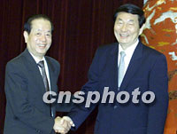 圖:朱镕基回到北京 2001年11月11日 18:58 ![]() 國務(wù)院總理朱镕基十一日回到北京,國務(wù)院副總理錢其琛等前往人民大會堂迎接。朱镕基總理此次出訪出席了在文萊舉行的第五次東盟與中國、日本、韓國領(lǐng)導人會議和東盟與中國領(lǐng)導人會議,并對印尼進行了正式訪問。中新社記者 滿會喬 攝 |