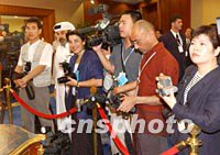 圖:各國記者關(guān)注中國臺北加入世貿(mào)組織 2001年11月13日 10:18 ![]() 第四屆WTO部長級會議十二日在多哈舉行中國臺北加入世貿(mào)組織議定書簽字儀式。中國臺北成為世界貿(mào)易組織第144個成員國。圖為采訪簽字儀式的各國記者。中新社記者 錢興強(qiáng) 攝 |