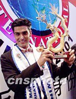 夏蒙2001世界男模大賽十二日晚在北京保利劇院落下帷幕,印度男模冠軍Rajeev Singh從參賽的四十六位選手中脫穎而出,榮獲本屆冠軍。中新社圖 武仲林 攝