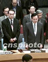 中國(guó)外長(zhǎng)唐家璇向紐約墜機(jī)遇難者表示哀悼(附圖) 2001年11月13日 11:56 ![]() 美東時(shí)間十二日上午,聯(lián)合國(guó)安理會(huì)召開(kāi)反恐外長(zhǎng)會(huì)議。會(huì)議開(kāi)始時(shí),安理會(huì)全體起立默哀一分鐘,為當(dāng)日上午紐約肯尼迪機(jī)場(chǎng)飛機(jī)墜毀事件中的遇難者表示深切哀悼。中新社記者 陳建 攝