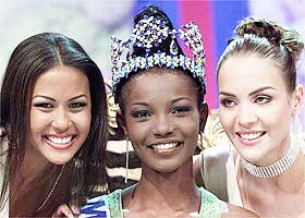 圖文:"黑姑娘"首次摘得"世界小姐"桂冠 2001年11月17日 16:11 ![]() 冠軍艾芭妮(中)、亞軍澤雷達(左)和季軍朱麗特(右)。(美聯(lián)社圖) 中新網(wǎng)香港11月17日消息:18歲的尼日利亞小姐艾芭妮·達雷戈(Agbani Darego)昨天榮登2001世界小姐寶座,從而成為第一位獲得“世界小姐”桂冠的黑人非洲小姐,她也是這一競選活動的第51位獲勝者。 93位入選佳麗昨晚齊聚南非太陽城競爭2001年“世界小姐”,艾芭妮最終從中脫穎而出。 世界小姐艾芭妮在賽前對路透社記者說,“黑人是美麗的!彼恢眽粝氤蔀橐幻嬎銠C科學(xué)家。 阿魯巴小姐澤雷達(Zerelda Lee)獲得亞軍,蘇格蘭小姐朱麗特·簡·霍恩(Juliet-Jane Horne)獲得季軍。 據(jù)悉,在近半個多世紀以來,只有三位獲勝者來自非洲,而其中兩位是來自南非的白種人,她們分別在1958年和1974年榮獲世界小姐,第三位是1954年,來自阿拉伯國家的埃及小姐。 本屆的“世界小姐”做了一些大膽的改革,其中一項措施就是不再公布佳麗們的三圍數(shù)字。發(fā)起人摩里夫人表示,“比賽除了要評判參賽者的容貌與身材外,更重要的一點是,要對她們的學(xué)識進行打分,僅有容貌而無內(nèi)涵的花瓶,今后將沒有資格成為‘世界小姐’,只有綜合得分最高者,才是真正的‘世界小姐’! |