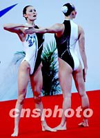 圖:九運會碧池邊的中國泳裝秀 2001年11月22日 14:41 ![]() 兩名江蘇美女身著雅致的黑白泳裝,胸前背后銹著中國書法“劍”字,極富魅力地展現(xiàn)在十一月二十二日的廣州九運會花樣游泳比賽中。中新社記者 賈國榮 攝 |
