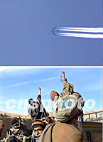 圖:北方聯(lián)盟將在一兩天內(nèi)對(duì)昆都士發(fā)起總攻 2001年11月24日 16:02 ![]() 二十三日,美軍多次出動(dòng)B—52重型轟炸機(jī)對(duì)阿富汗昆都士東部和東北部塔利班陣地進(jìn)行猛烈轟炸。北方聯(lián)盟二十三日攻占了昆都士東約二十公里的要塞汗阿巴德(鎮(zhèn))。北方聯(lián)盟將在一兩天內(nèi)對(duì)昆都士發(fā)起總攻。圖為北方聯(lián)戰(zhàn)士對(duì)美機(jī)轟炸塔利班陣地表示喜悅之情。中新社 |