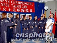 圖:臺北市長馬英九為中國臺北女足壯行 2001年11月30日 09:38 ![]() 臺北市長馬英九11月29日一身足球運(yùn)動裝,親自為參加亞洲杯女足賽的中國臺北隊(duì)壯行。中新社記者 任晨鳴 攝 |