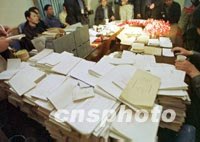 圖:北京警方破獲一起制造銷售假發(fā)票案 2001年12月06日 11:25 ![]() 北京市警方日前搗毀一個(gè)制造銷售假發(fā)票窩點(diǎn),收繳假發(fā)票千余冊(cè)。這個(gè)犯罪團(tuán)伙以租住的民房為窩點(diǎn)制假販假,因此警方呼吁市民要按有關(guān)規(guī)定出租房屋,以免為壞人提供罪犯條件。中新社記者 宋吉河 攝 |