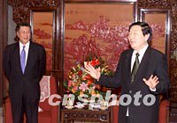 ![]() 中國國務院總理朱镕基二十六日在北京中南海會見前來述職的澳門特別行政區(qū)行政長官何厚鏵。中新社記者 毛建軍 攝