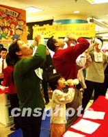 圖:搞促銷廣州商家舉行“吮”奶擂臺(tái)賽 2002年01月12日 19:17 ![]() 節(jié)假日是商家做“秀”搞促銷的黃金時(shí)段。周六,廣州中華廣場(chǎng)舉行了一場(chǎng)“瘋狂‘吮’奶擂臺(tái)爭(zhēng)霸賽”,吸引了不少自認(rèn)為飲量驚人的顧客前來(lái)參賽。圖為男女老幼同場(chǎng)較量。中新社圖 羅仰明 攝 |