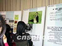 圖:中國留美學(xué)生觀看揭露邪教"法輪功"圖片展 2002年01月16日 17:05 ![]() 美國時(shí)間十五日晚,一個(gè)揭露“法輪功”邪教本質(zhì)的圖片展在中國駐美使館為留學(xué)人員舉行的新年招待會(huì)上展出,幾名女留學(xué)生站在去年一月二十三日在天安門廣場(chǎng)上自焚的陳果圖像前,扼腕痛惜。中新社記者 徐德金 攝 |