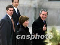 圖:布什訪問北京信心十足 2002年02月21日 16:38 ![]() 美國總統(tǒng)布什二十一日抵達北京首都國際機場時,向迎接的人們豎起拇指。中新社記者 毛建軍 攝