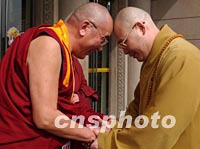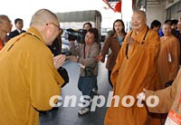 組圖:法門寺佛指舍利臺灣迎請團抵達西安 2002年02月21日 19:49 ![]() 由臺灣佛教法師、信眾組成的法門寺佛指舍利赴臺灣地區(qū)瞻禮(供奉)恭迎團,二十一日下午乘機抵達西安咸陽國際機場。圖為恭迎團在機場受到熱烈歡迎。中新社記者 錢興強 攝 ![]() 法門寺將舉行佛指舍利赴臺灣地區(qū)瞻禮(供奉)法會,來自大陸、港臺以及各地的佛教信眾匯聚西安。圖為中國著名法師圣輝(右)和中國藏學院副院長那倉活佛(左)親切見面。中新社記者 錢興強 攝