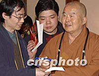 組圖:法門寺佛指舍利赴臺供奉新聞發(fā)布會 2002年02月22日 09:54 ![]() 法門寺佛指舍利赴臺供奉新聞發(fā)布會,日前在西安喜來登大酒店舉行,中國佛教協(xié)會等有關(guān)人士和臺灣佛教人士以及來自大陸、港臺的眾多記者參加了發(fā)布會。圖為臺灣惟覺法師與法門寺凈一方丈在發(fā)布會上。中新社記者 錢興強 攝 ![]() 法門寺佛指舍利赴臺供奉新聞發(fā)布會,日前在西安喜來登大酒店舉行,中國佛教協(xié)會等有關(guān)人士和臺灣佛教人士以及來自大陸、港臺的眾多記者參加了發(fā)布會。圖為臺灣星云法師為賓客簽書。中新社記者 錢興強 攝
