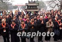 圖:臺灣佛教人士在西安大慈恩寺做法事 2002年02月22日 13:59 ![]() 由臺灣佛教人士組成的法門寺佛指舍利赴臺灣地區(qū)瞻禮(供奉)恭迎團(tuán),二十二日來到西安大慈恩寺做法事。中新社記者 錢興強(qiáng) 攝
