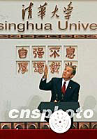 組圖:布什在清華演講 2002年02月22日 14:12 ![]() 訪華的美國總統(tǒng)布什二十二日在北京清華大學(xué)發(fā)表演講。中新社記者 賈國榮 攝 ![]() 美國總統(tǒng)布什二十二日在北京清華大學(xué)發(fā)表演講后下臺時,踩在臺階上身體搖晃了一下,他馬上和校長張開雙臂好似保護(hù)動作般開玩笑。中新社記者 賈國榮 攝