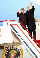 圖文:“空軍一號(hào)”騰空 布什結(jié)束訪華離京回國 2002年02月22日 16:26 ![]() 美國總統(tǒng)布什和夫人二十二日下午在北京登上空軍一號(hào)招手告別,結(jié)束中國之行。中新社記者 賈國榮 攝