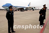 圖文:中國(guó)軍警在機(jī)場(chǎng)嚴(yán)密保衛(wèi)美“空軍一號(hào)” 2002年02月22日 18:45 ![]() 中國(guó)軍警二十二日在北京機(jī)場(chǎng)嚴(yán)密保衛(wèi)美國(guó)總統(tǒng)布什乘坐的空軍一號(hào)專(zhuān)機(jī)。中新社記者 賈國(guó)榮 攝