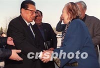 圖:喬石參觀吳作人精品展 2002年03月12日 18:25 ![]() 前全國人大常委會委員長喬石12日參觀在北京中華世紀(jì)壇舉辦的“吳作人和他的朋友--吳作人精品暨吳作人國際美術(shù)基金會接受捐贈作品展”,與著名藝術(shù)教育家吳作人先生的夫人肖淑芳親切握手。中新社記者 張勤 攝
